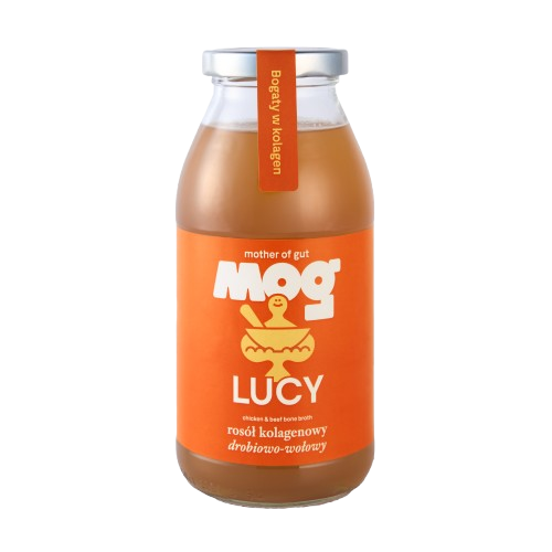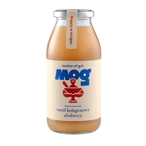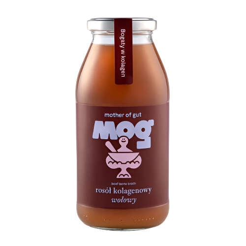 Kolagen zawarty w rosole poprawia elastyczność i nawilżenie skóry, wzmacnia włosy, wspiera zdrowie jelit i stawów. To rosół z pełnym profilem aminokwasów, które wspierają regenerację mięśni, wzmacniają układ odpornościowy, poprawiają funkcje mózgu, regulują poziom cukru we krwi, a także pomagają w produkcji hormonów i enzymów.